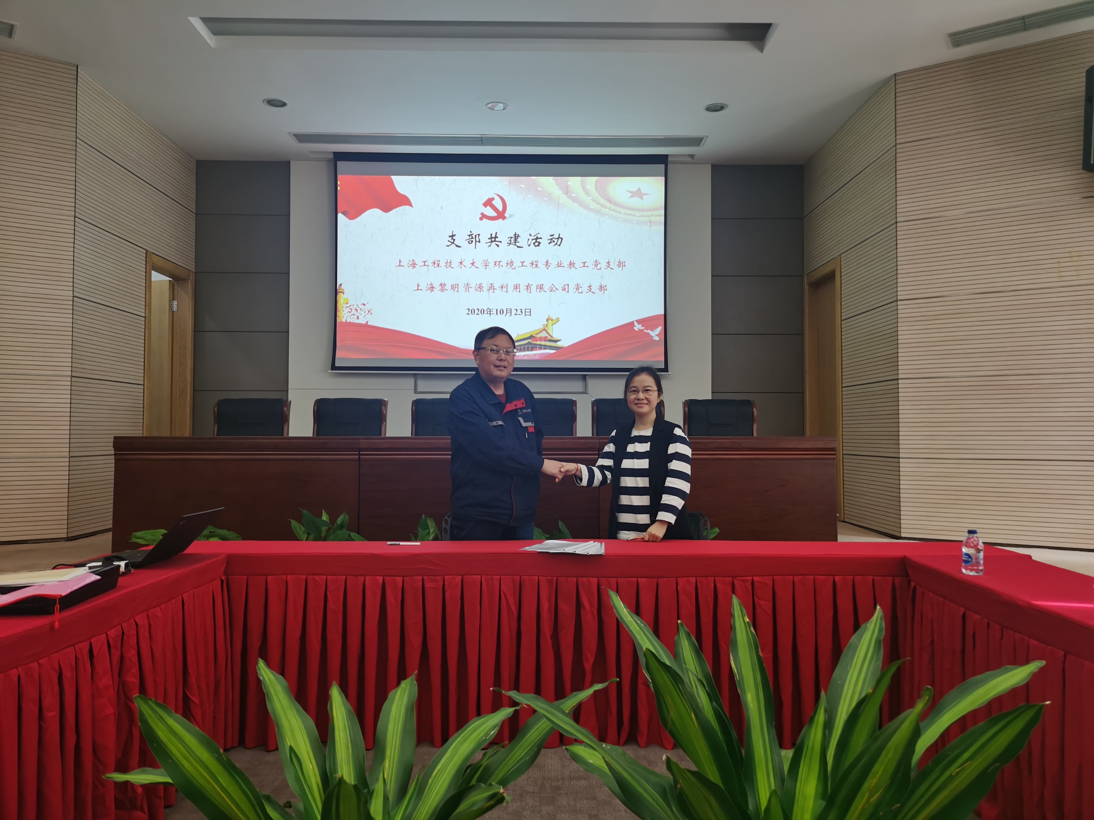 在参会人员的共同见证下,金沙威尼斯欢乐娱人城环境工程专业教工支部书记胡婷莛同志与上海黎明资源再利用有限公司支部委员王文成同志签订了党建共建协议书。双方商定坚持“资源共享、优势互补、互帮互学、共同提高”的原则,充分发挥学校和企业党组织的各自优势,创造校企党建共建的新模式、新思路、新方法,不断推进队伍互动、阵地共创、难题共解、人才共育等工作,积极探索环境工程专业人才培养模式改革与创新,同时开展科研项目的合作。