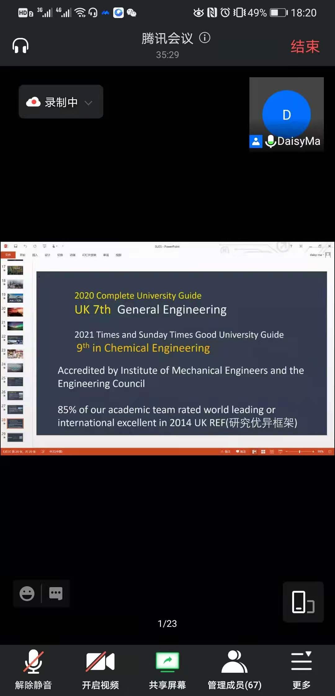 在宣讲会中,首先是嘉宾阿伯丁大学国际招生官Daisy老师对阿伯丁城市以及阿伯丁大学基本情况进行了介绍,使学生充分认识到去英国留学、选择阿伯丁大学的优势。随后,强思喆老师对本次2+2本科双学位项目进行了重点说明,详细介绍了选择“2+2”项目的优势。最后,通过与学生的互动交流,让学生们知道并全面了解了“2+2”本科双学位项目,便于对出国学习有意向学生根据自身情况,做好提早规划和准备安排。