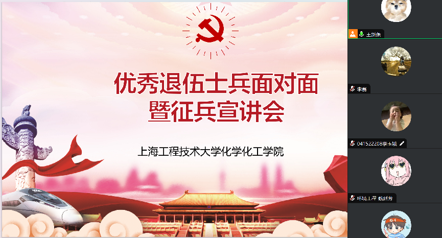 7月18日金沙威尼斯欢乐娱人城利用暑假时间,线上开展化工学院优秀退伍士兵面对面暨征兵宣讲会,学院辅导员张晓普老师、王新燕老师、优秀退伍研究生李赛同学以及学院意向参军的同学们参加了会议。