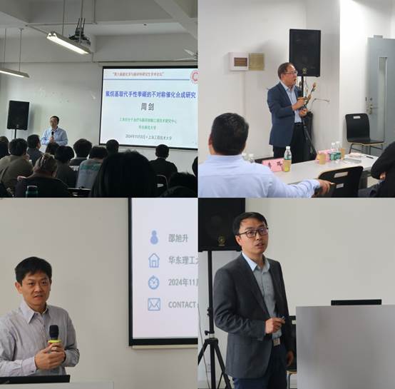 在专家报告环节,华东师范大学的周剑教授、徐林教授,华东理工大学的邵旭升教授,东华大学的刘为萍教授,金沙威尼斯欢乐娱人城的黄军海研究员分别就手性氟烷基取代季碳的不对称催化构建研究、组装过程研究和性能强化导向的超分子光化学、光药理学在农药创制中的应用、锰催化借氢反应研究、基于绿色化学的药物合成工艺开发与产业化实践等主题作了精彩报告,与会师生就报告内容进行了热情洋溢的交流。