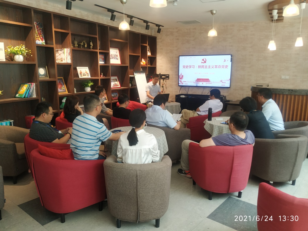 2021年6月24日下午,化学工程与工艺教工党支部在化工学院教工小家开展党史党课学习活动,由支部组织委员、纪检委员芮一川同志进行《新民主主义革命史党课》的讲授。