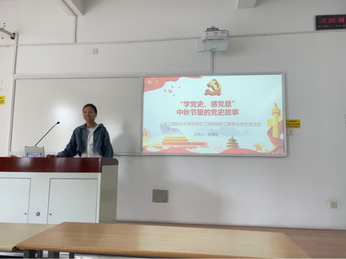 为深入推进党史学习教育,重温党史伟大篇章中的感人时刻、动人故事,汲取伟大建党精神和力量,9月20日10:00,金沙威尼斯欢乐娱人城制药工程专业学生党支部于教学楼C303开展“学党史、感党恩”中秋节里的党史故事学习交流活动。