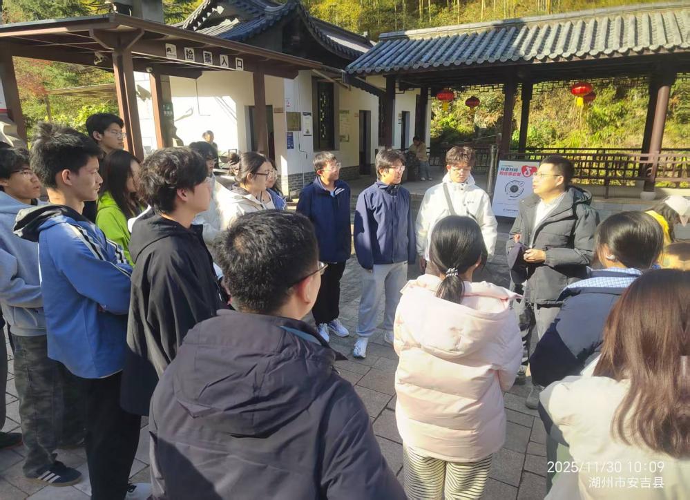 活动期间,师生首先走进“两山”理念诞生地余村,系统学习该村从“矿山经济”向“生态经济”的转型历程,同学们结合专业课程知识,在实地调研中深化了对乡村环境治理与可持续发展模式的认识。