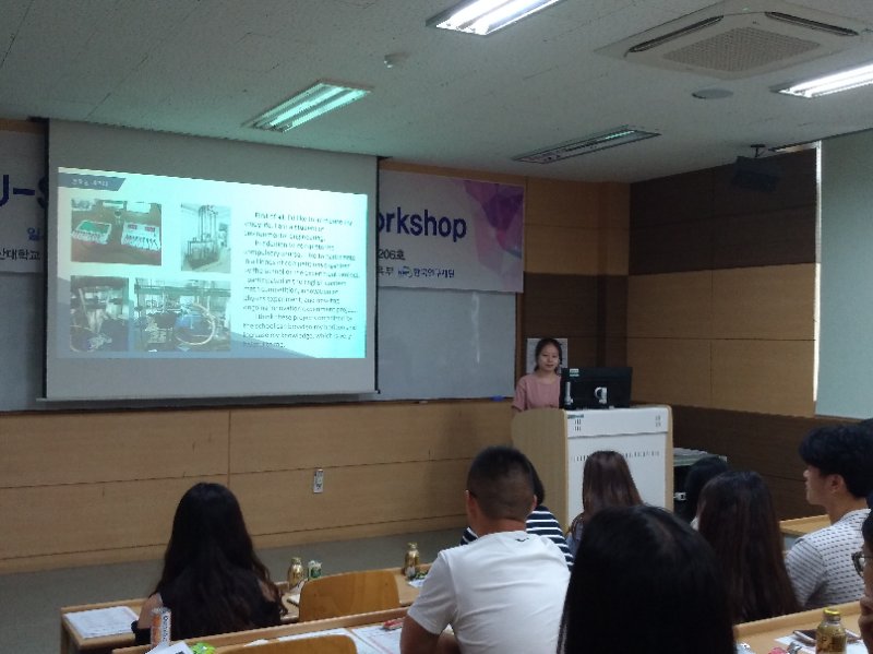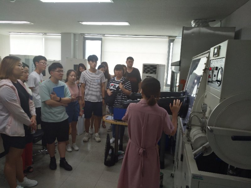 在蔚山大学化学工程学院,CK-I项目负责人柳益根教授及学生代表,为到访师生举行了简单的欢迎会。会后,先由在蔚山大学攻读博士研究生的我院15届本科毕业生齐阎春晓,为大家做了主题为“Studyand Life in UOU”的演讲,同大家展示了她当前的课题研究的概况。之后,中韩双方学生分别做了在学习、职业生涯规划等方面的交流。当天下午,韩方相关工作人员带领到访师生参观了蔚山大学校园及化学工程学院的生物工程、催化剂及计算机模拟等实验室,并现场回答了同学们提出的问题。按照既定工作议程,赴韩团组学生还将到Hyundai Motors和Hyundai Heavy Industry进行参观学习并参加多场由蔚山大学组织的学术交流会和主题讲座。