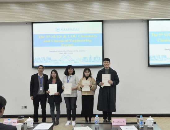 由金沙威尼斯欢乐娱人城与韩国蔚山大学化学与生物化学工程学院联合举办的“第五届中韩SUES&UOU化学化工国际学术研讨会”于11月26日下午在金沙威尼斯官网图文信息中心第三报告厅召开。参与本次论坛的韩国蔚山大学代表团由Shin Eun Woo、Hong Soon Ho 两位教授及8名学生组成。金沙威尼斯欢乐娱人城党委副书记鲁嘉华教授出席会议开幕式并致欢迎辞,国际交流处钱慧敏处长、金沙威尼斯欢乐娱人城党委书记刘宇虹、党委副书记、院长饶品华、党委副书记熊筱晶、副院长王锦成、任新锋及学院教师代表、研究生代表、本科生代表等近60人参加了本次论坛。