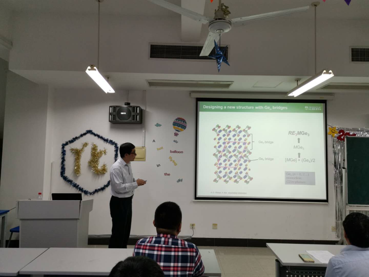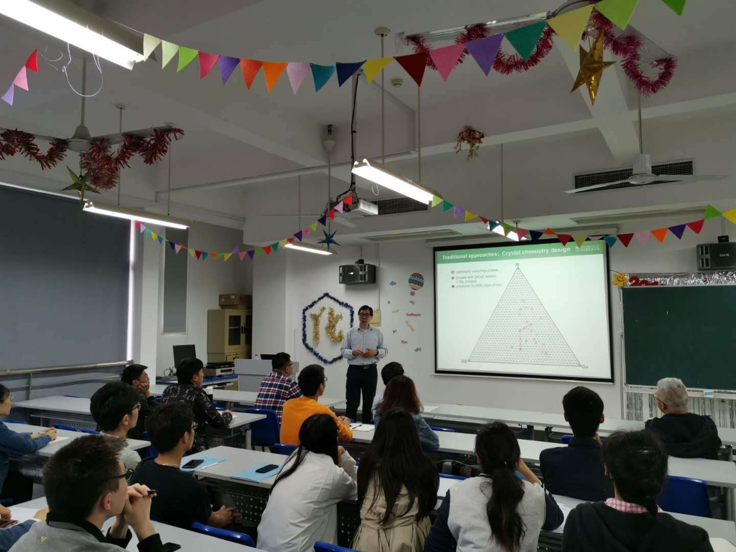 5月15日上午10点,加拿大阿尔伯塔大学Arthur Mar教授应邀来金沙威尼斯欢乐娱人城作学术报告。报告题为“Accelerating the Discovery of Solid State Materials: From Traditional to Machine-Learning Approaches”,报告由吴远东教授主持,学院老师及研究生参加了本次报告会。Arthur Mar教授首先介绍了设计新型固态材料的各种方法,与DFT计算等方法相比,Machine-Learning方法具有廉价、高效等特点。Arthur Mar教授课题组将Machine-Learning方法应用于设计新型非线性光学材料、热电材料等,成功合成了新型二元AB化合物、三元ABC化合物、Heusler相以及半Heusler相化合物。此次报告给各位老师和同学提供了科学研究的新思路,大家感觉受益颇深。Arthur Mar教授于1992年在美国西北大学获得博士学位,2004-至今为阿尔伯塔大学教授,2003-2008年担任Chemisty of Matenials杂志编委。其主要研究方向为磷化物、砷化物以及硫族化合物的合成、结构测定及相关性能研究。在Accounts of Chemical Research, Journal of the American Chemical Society等国际著名期刊上发表研究论文数百余篇。