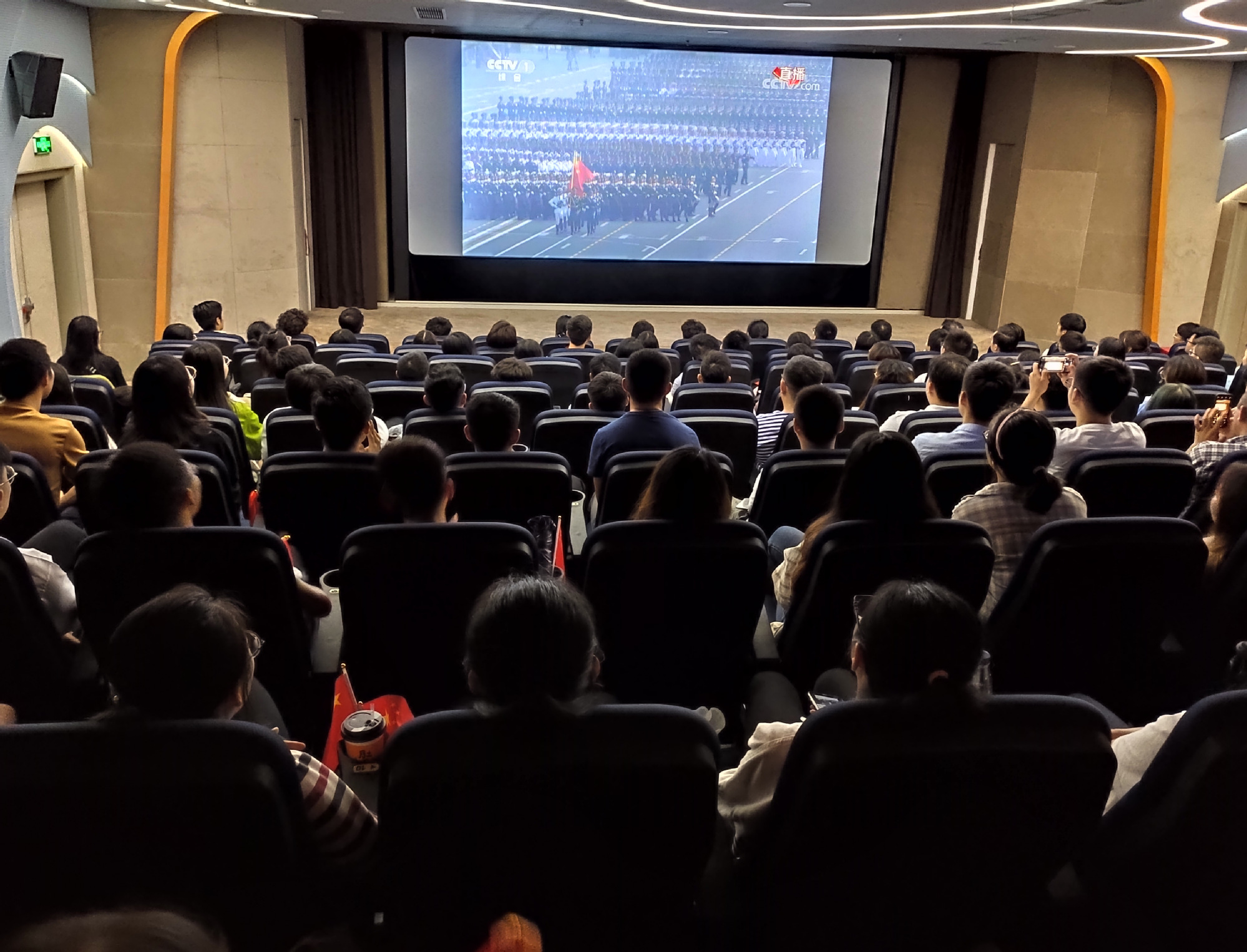 10月1日上午,雨点阵阵,但丝毫未能减弱学院四十余名教工、学生党员对参加学校升旗仪式的兴奋和热情,他们用对国旗深情的注目礼和庄严的国歌表达了对新中国成立70周年的庆祝。随后,教工及学生党员分别到学校师生活动中心木槿影院和学院4405会议室听取了习近平总书记在庆祝中华人民共和国成立70周年大会上的讲话、观看了阅兵典礼及群众游行的现场直播,观看直播过程中,阅兵方队的精彩表现和高科技新武器的首次出场不时引起现场阵阵掌声。