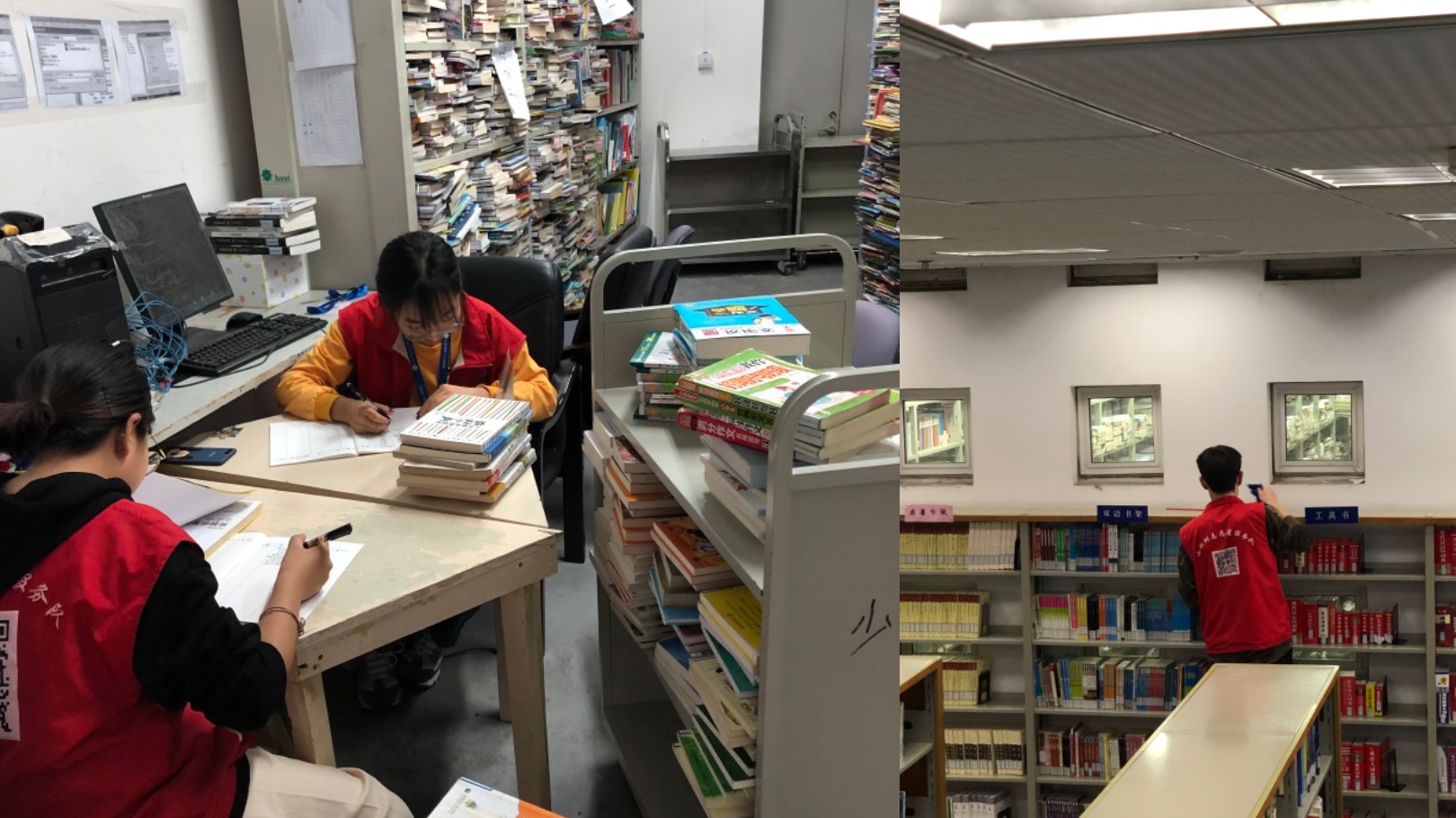 “不忘初心、牢记使命”主题教育在学院党委深入开展,学习实践热情在党员中不断升华,为落实校党委主题教育要求,在边学边检中加强党员学习深度,提升党员服务意识和本领,化学工程与工艺教师和学生党支部联合学习实践,互帮互促,共同提高。10月25日下午,两支部一起来到松江区图书馆,一起开展图书馆志愿者服务,进行场馆清扫、图书整理、书籍登记等志愿工作。很多教师党员是第一次做图书馆志愿者,虽然工作内容简单,但图书馆志愿服务担负着文化传播的工程,意义重要,党员教师和同学都投入了十分的热情;虽然工作繁琐复杂,但每位党员都能仔细认真对待,一丝不苟。为了确保准确,有的党员甚至趴在地上仔细核对书目,体现出党员不怕吃苦,克服难题的攻坚精神。在整理书籍和登记书目中,教师党员还提出一些解决难题的方法,发散思考,比如利用无人机和人工智能技术帮助调整书籍存放,采用信息技术整理书目等方法和建议,得到了图书馆管理人员的回应。