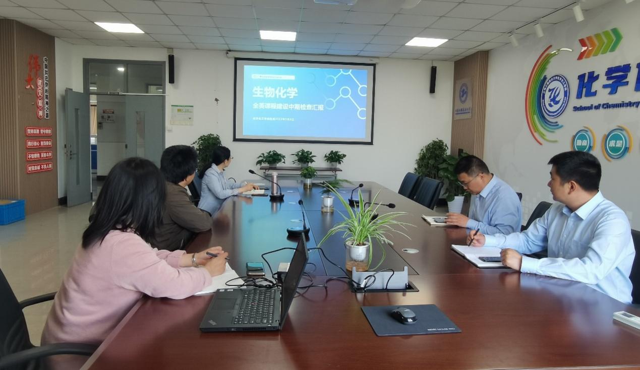 各个课程建设负责老师分别对课程建设目标、计划进度、进展情况、阶段性成果和经费使用情况等进行了汇报。王金果、陆杰、王润锴、尹小英仔细查阅了课程建设中期资料,包括教材选用、教学大纲、课程简介、课程教学PPT和线上资源等建设进度。针对本次中期检查发现的问题,结合各课程负责人所提出的重难点,学院提出了相应的建议和对策,并督促各课程负责人加快全英文课程建设的进度,以确保课程建设高质量高标准完成。