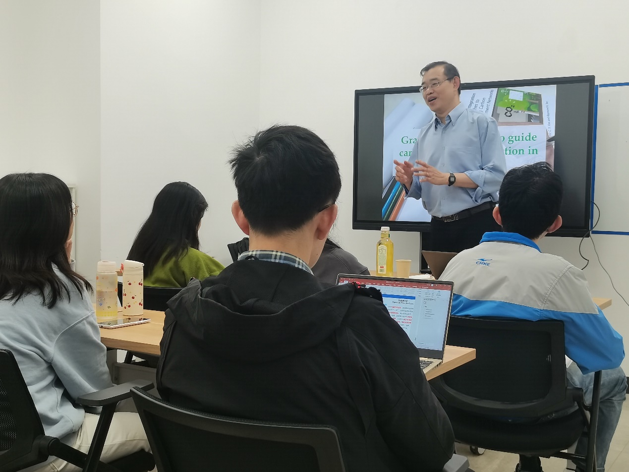 4月25日,Foo教授在实训楼5323会议室与部分从事碳足迹评估与过程集成优化研究的师生进行学术研讨。上午,多位硕士生汇报了在研课题,Foo教授逐一点评,现场交流气氛热烈。下午,研讨会继续,Foo教授介绍了他当前的主要研究,并作题为“图解法指导下的工业生产过程碳减排”的学术报告。