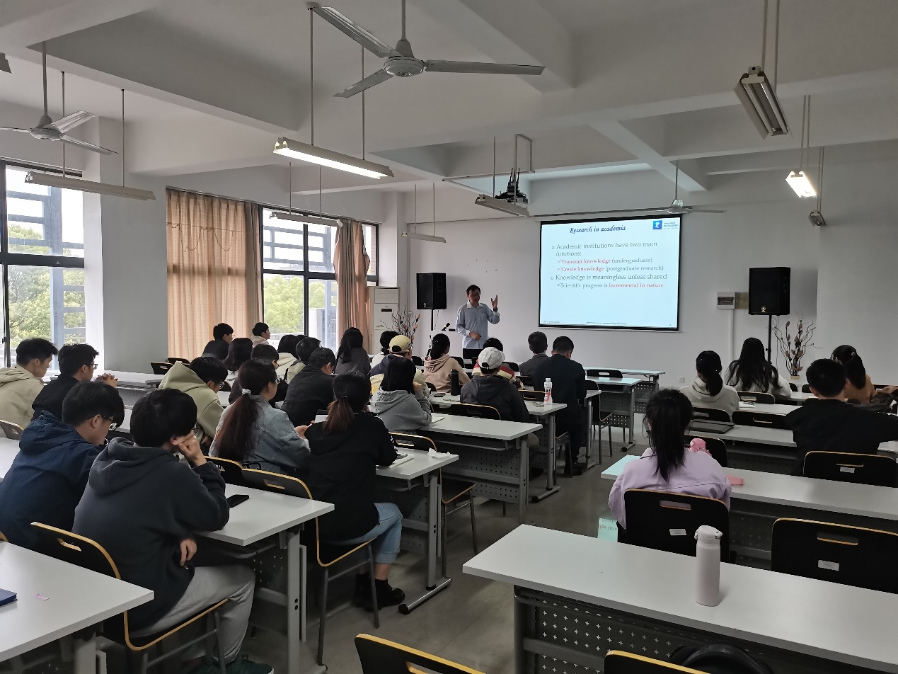 同日,Foo教授在实训楼4418教室为金沙威尼斯官网师生作了题为“成功国际学者的七个关键”和“学术写作——期刊编辑视角”两场精彩的讲座。Foo教授鼓励青年学者要独立思考,构建和发展自己的学术特长,积极与同行交流以拓宽科研思路和合作渠道。Foo教授还回答了现师生有关规划科研方向、寻找合作者、撰写英语论文、回复审稿意见等问题。
