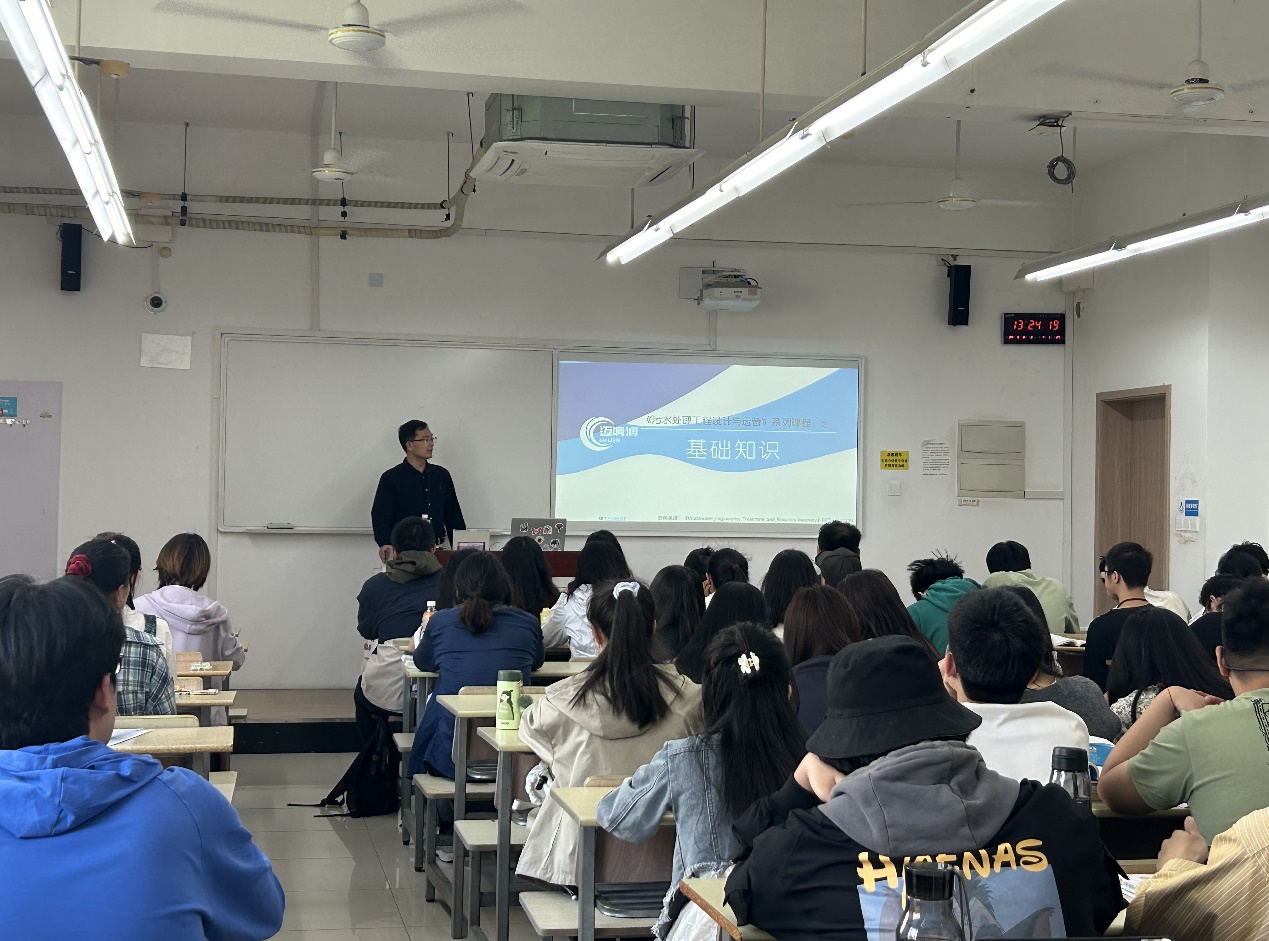 On the afternoon of May 8th, Professor Hao Zongdi, the main lecturer of the course Environmental Engineering Microbiology, specially invited Guo Pengfei, the founder and technical director of Wuxi Maimrun Environmental Technology Co., Ltd., a senior engineer, to give a rich and practical guidance course for undergraduate students in the Department of Environmental Engineering. The theme of this course is Design and Application of Wastewater Biological Treatment Process and Career Planning Suggestions for College Students majoring in Environmental Engineering, aiming to enhance students' understanding of professional knowledge and future career planning through the sharing of industry experts.