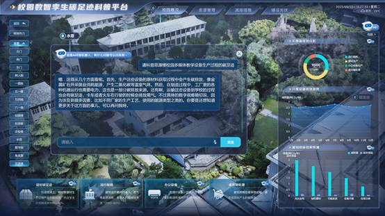 Against the backdrop of the deepening of the national dual carbon strategy and the increasing emphasis on green and low-carbon education, the college actively participates in the construction of the Shanghai carbon management pilot unit, innovates the form of green and low-carbon education, fully utilizes the smart education platform to develop high-quality educational resources, popularize relevant knowledge, and carry out online activities, and jointly develops the AI+Digital Twin carbon footprint science popularization platform with Shanghai Songjiang No.2 High School. The platform aims to enhance the scientific and practical nature of green and low-carbon education through digital means, and promote the intelligent and visualized new stage of campus carbon footprint management.