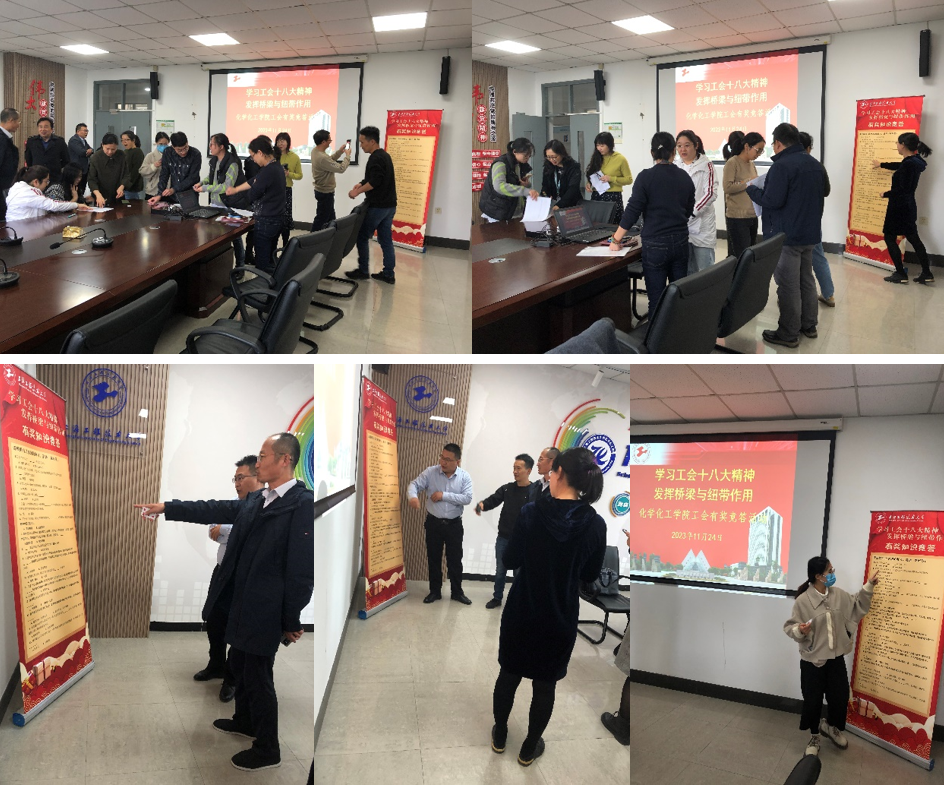 为了深入贯彻执行工会十八大精神,更好地发挥纽带与桥梁作用,为全体教职工服务,11月23日,金沙威尼斯欢乐娱人城工会在实训楼4414室开展了由学院党政领导,工会委员和工会积极分子参加的“学习工会十八大精神,发挥桥梁与纽带作用”知识竞赛活动。