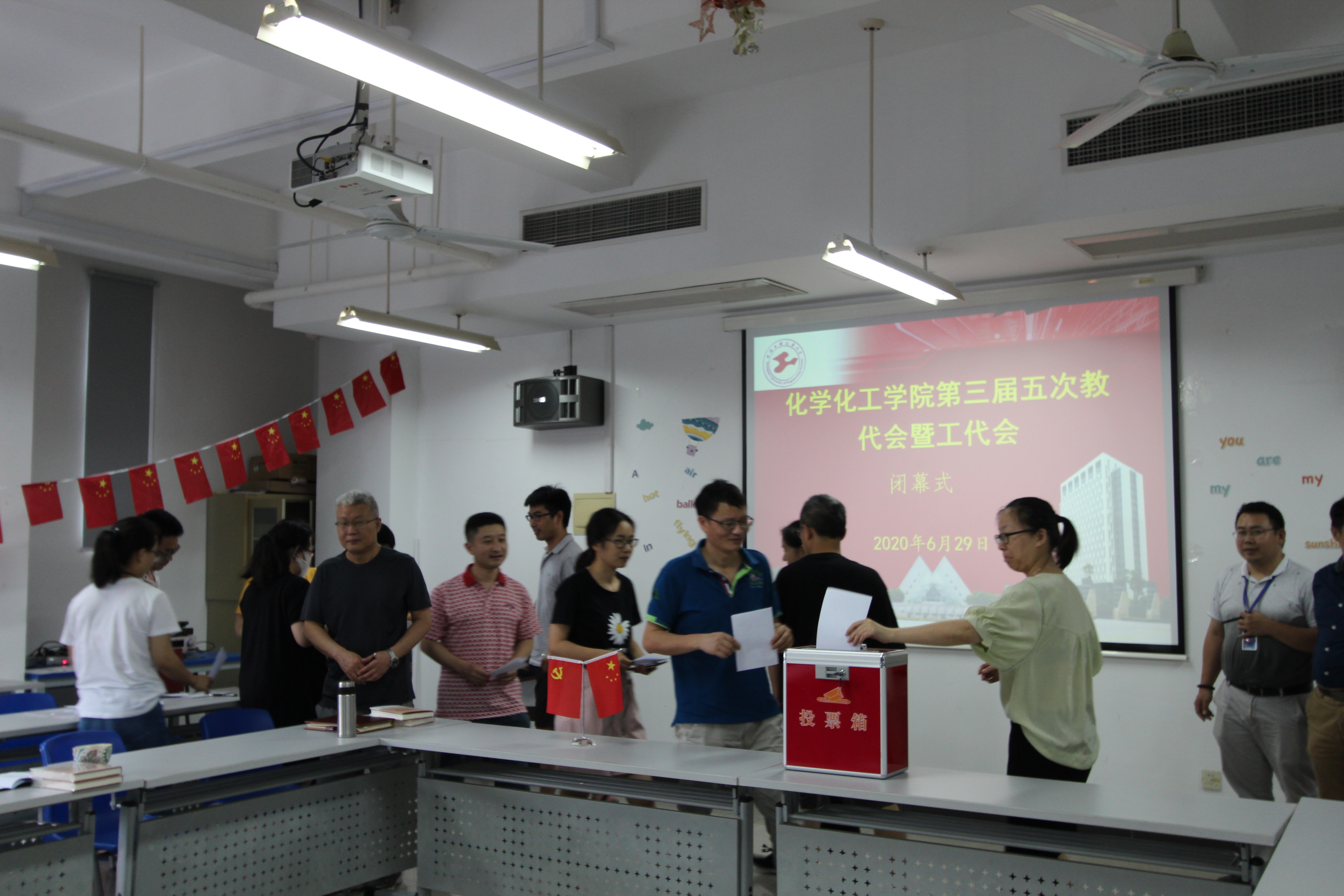 金沙威尼斯欢乐娱人城三届五次教代会暨工代会于2020年6月23日至29日隆重举行,校工会柳如荣常务副主席和张鹏主任参加了开幕式。在全体与会代表的共同努力下,圆满完成了预定的各项任务。