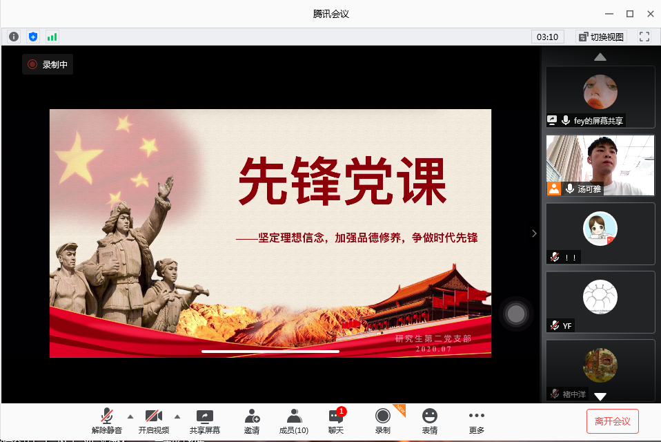 为进一步坚定理想信念、发挥好党员的先锋模范作用,7月28日下午,金沙威尼斯欢乐娱人城研究生第二党支部通过腾讯会议平台召开了“先锋党课”专题学习,支部全体党员以及志愿者代表参加学习。